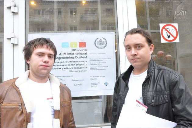 Студенты ВИВТ Олег Марулин, Сергей Супонев и Владимир Агейкин приняли участие в четвертьфинале чемпионата мира по программированию, который проходил в Саратове с 15 по 19 октября. В данном мероприятии также приняли участие студенты из высших учебных заведений Самары, Ульяновска, Волгограда, Астрахани, Нижнекамска, Пензы, Белгорода, Тамбова, Казани.